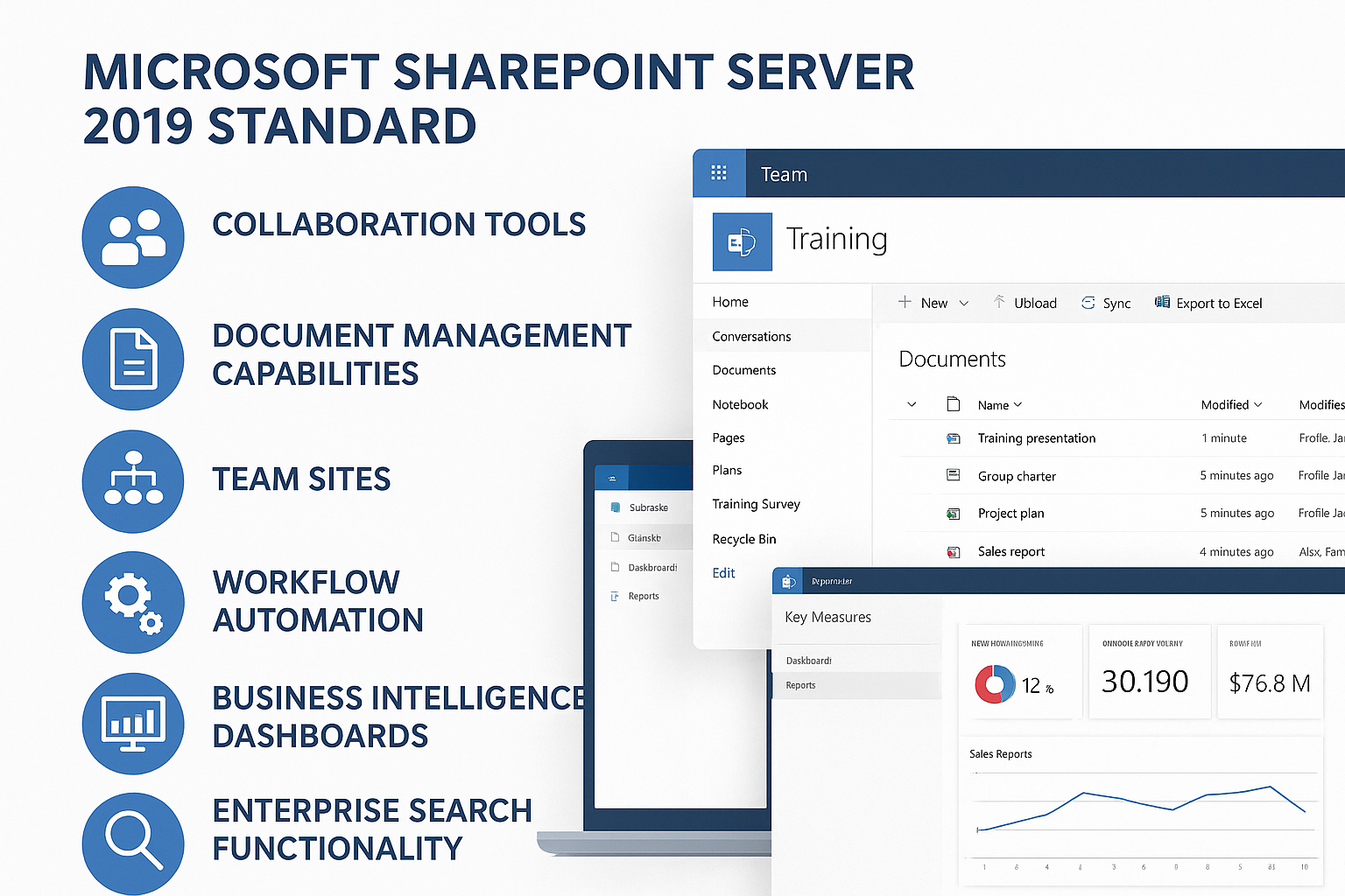 Microsoft SharePoint 2019 Standard is the latest version of Microsoft’s SharePoint platform, designed to give users a host of features and infrastructure to share, store, access and organize information from any device. Highly configurable, SharePoint 2019 Standard is used by many organizations to build websites and manage projects of all kinds.